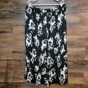 Simply Vera Wang Floral Satin Accordion Midi Skirt XXL Black White Dark Coquette