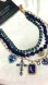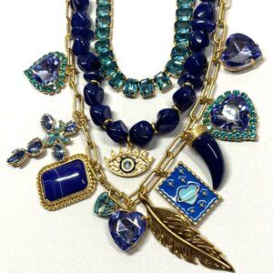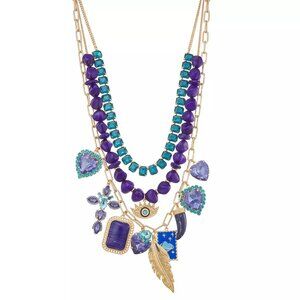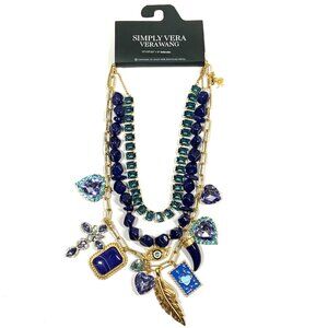 Simply Vera Wang Gold Tone 3 Row Charm Statement Necklace Evil Eye Heart Feather