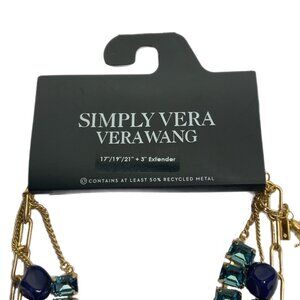 Accessorize in style with this Simply Vera Vera Wang Gold Tone 3 Row Multi Charm Statement Necklace. Very lightweight. Has so many beautiful charms including hearts, evil eye, astrology, feather and more! Has a 3" extender attached.