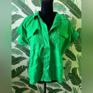 Simply Vera Wang Green Linen Blend Short Sleeve Blouse Top Size L