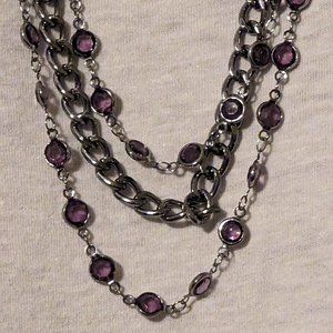 Simply Vera Wang Gun Metal with Purple Accents 3-Layer Necklace NWT