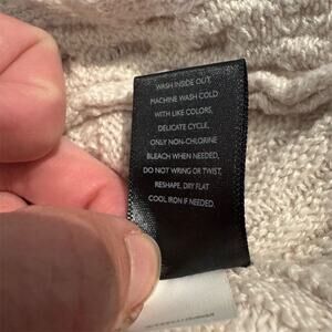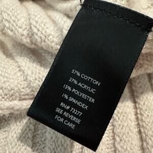 This sweater has a small pull on the front left hem that could probably be pulled through; see photo for details. Otherwise it's in great preowned condition. It has a diagonal cable-knit pattern and seems cozy for fall. Petite L / Petite XL