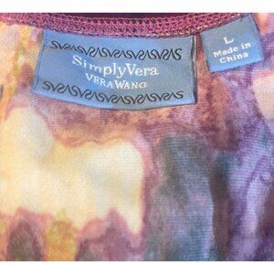 Simply Vera Wang L Purple-Coral Splash Scoop Neckline Mesh Trim Sleeveless Dress
