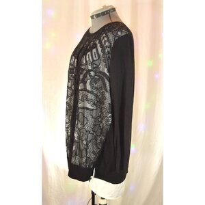 Simply Vera Wang Layered Look Black Sweater size 2X Lightweight Black sweater, lace front with white shirt lining, white shirt hemline visible on back. Very comfortable, great for work or wear it with jeans on the weekend. Good Used Condition
