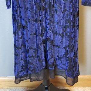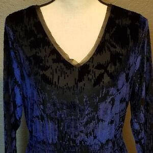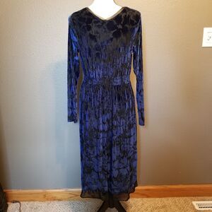 Simply Vera Vera Wang Womens Size Medium Dress Midi Mesh Trim Elastic Waist Abstract Pattern Indigo Blue/Purple Velvet Burnout Dark Romantic Fairy Grunge Whimsigoth Witchy Gothic Autumn