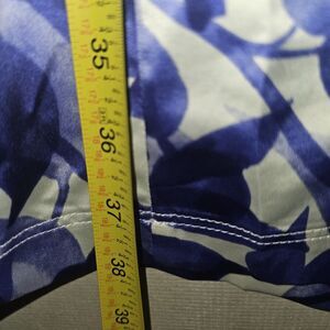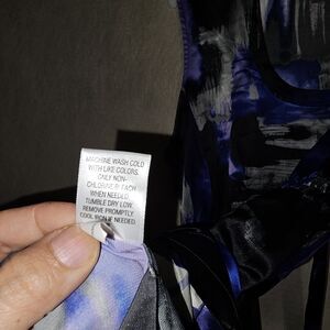 While the size tag has been ripped off, the measurements in the pictures suggest it would fit a medium or large. The dress length is above knee and the design includes a geometric/abstract pattern and stretch design features. This dress is perfect for any fashion-forward woman who wants to add a touch of American style to her wardrobe.