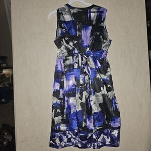 Simply Vera Wang Mini Dress Sz M-Purple/Black Abstract Sleeveless Stretch Tie Bk