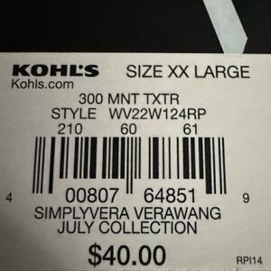 Simply Vera Wang Mint Leopard Print Sleeveless Tank Blouse NWT Size XXL