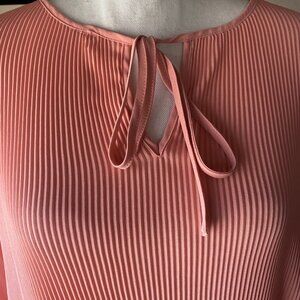 Simply Vera Wang Rosette Pink Pleated Chiffon Split Neck Peplum Blouse XL
