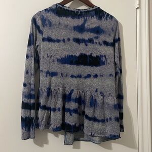 Stylish long sleeve top with a unique blue and black pattern. Features a modern design for versatile wear.