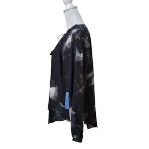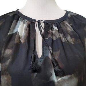Simply Vera Wang Size L Black Abstract Print Semi Sheer Tasseled Top NEW w/Tag