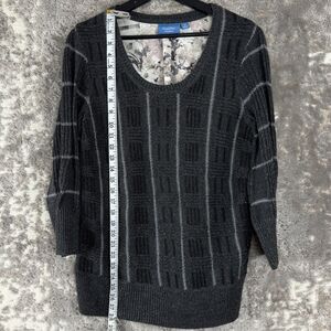 Simply Vera Wang Size M Striped Floral Shimmer Metallic Sweater Gray 3/4 Sleeve