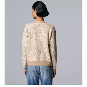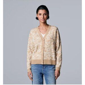 Simply Vera Wang Tan Animal Print Knit Cardigan Button Sweater Plus Sz XXL New