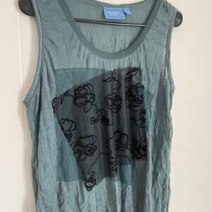 Simply Vera Wang Tank Teal Green Crinkle Lace Tank L Y2K Fairy Grunge Applique