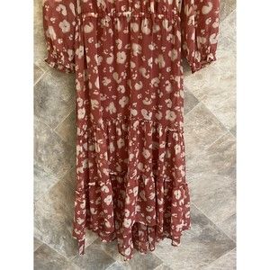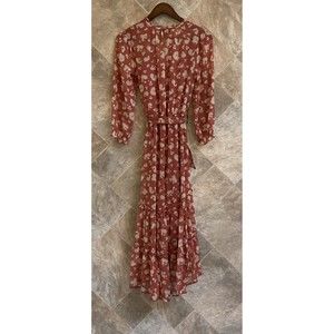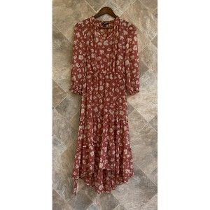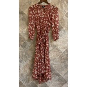 Simply Vera Wang Terra Cotta Leopard Print Floral High-Low Midi Dress Size XS