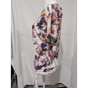 Simply Vera Wang Top Women's Size XS Floral Dolman Cap Sleeve Tie Hem Shirt Top