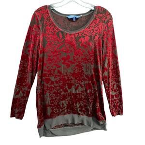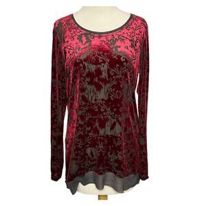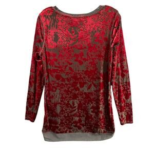 Simply Vera Vera Wang Velvet Burnout Top Womens Size M Red Sheer Whimsygoth Fairy Grunge Vamp