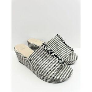 Simply Vera Wang Wedges Size 9.5 Black White Textile Upper Open Toe Sandals