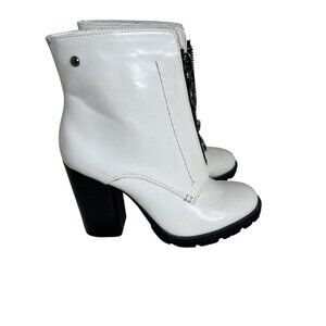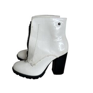 Simply Vera Wang White Patent Leather Heeled Ankle Boots With Front Zipper & Rin