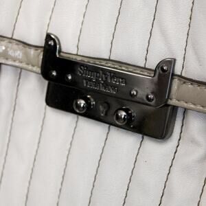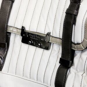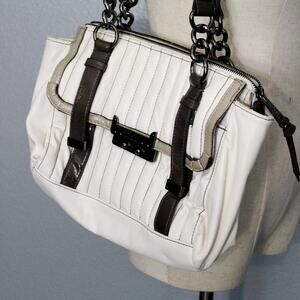 Simply Vera Wang white satchel purse with two tone grey details. Gun metal clasps and handle attachments.