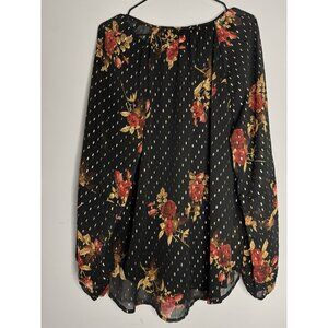 Simply Vera Wang Women Size XXL Fairy Grunge Black Floral Red Rose Top Boho Vamp