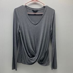 Simply Vera Wang Women's Medium Top Faux Wrap Lightweight Soft Grey Long Sleeve