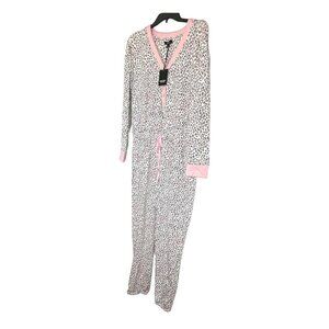 Women's Simply Vera Vera Wang White and Pink Leopard Long Sleeve Onesie Pajamas Sz M NWT