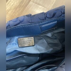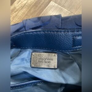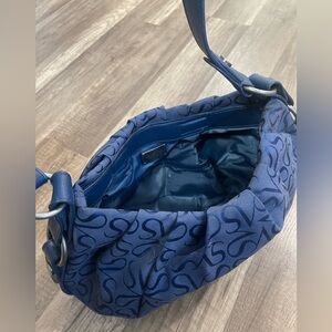 Simply Vera Wang blue canvas monogram slouch hobo bag Y2K croissant formal