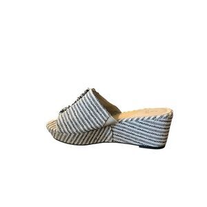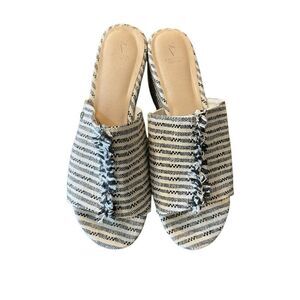 Simply Vera Wang Braeburn Black Wedge Sandals Size 9.5 M Fabric Fringe Striped