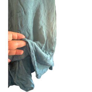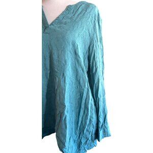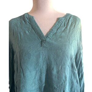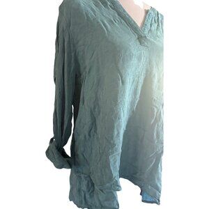Simply Vera Women Top L Green Blue Teal Blouse V Neck Roll Tab Rayon Pullover