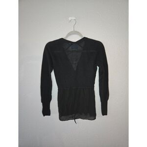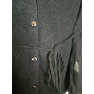 Simply Vera Vera Wang Women's Black Button Up Long Sleeve Sheer Cardigan. Features Tie at Waist for Flattering Fit. Soft and Lightweight. Sweater: 55% Ramie; 45% Rayon. Woven: 100% Polyester. Size Medium. Excellent Used Condition.
