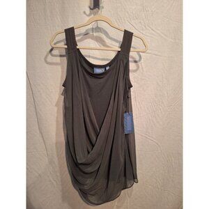 Simply Vera Women's Gray Sheer Ruched Side Layered Sleeveless Top size L