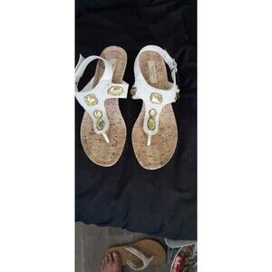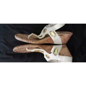 Simply Vera Womens White Wedge Sandals With Beads. Size 8