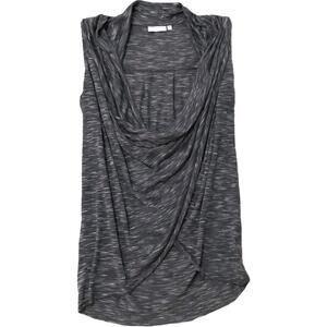 Simply Vera X-SMALL Low Drape Neck Faux Collar Heathered Raw Hem Sleeveless Blouse