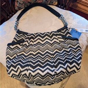 Simply Vera Zig Zag Straw Hobo Shoulder Bag w/Chain Strap ~ NWT