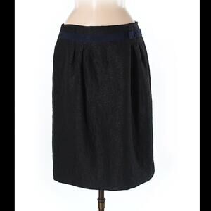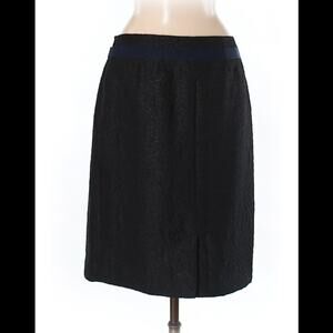 Black tapestry jacquard pencil skirt with ribbon accent at waist. Not much for stretch.