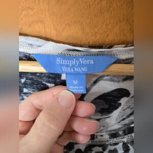 Simply Vera by Vera Wang Black White and Grey Short Sleeve Floral Vneck Blouse