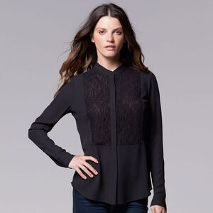 Simply Vera Vera Wang Medium Lace Blouse Pleated Back Hidden Button Up