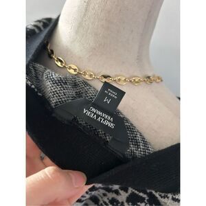 Simply Vera Vera Wang Woman’s Size M Long Sleeve Button Up Sweater cardigan animal print black and white