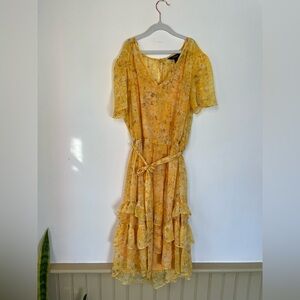 Simply VeraWang Chiffon Dress Butter Yellow Fairycore Tiered Coquette Women Sz M