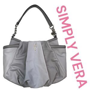 Simply Vera Wang Womens Gray Single Strap Multi Pocket Purse Handbag Shoulderbag