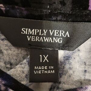 Beautiful top for any occasion. Made of rayon materials. Feels soft and velvety. Tag says size 1X but measured as a large.
