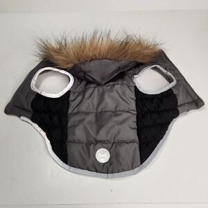 Simply Wag Puffy Dog Coat Small Faux Fur Hood Snapback Reflective Harness Hole