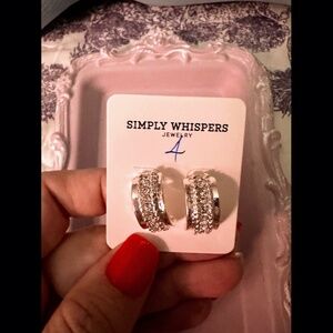 Simply whispers Silver Crystal Half Hoop Earrings. 2 shiny rows with a fine line of white crystals. Silver semi hoop earrings. Hypoallergenic.