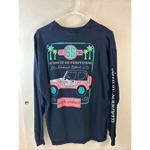 Simply southern Ls jeep t-shirt navy. minor discoloration spots if you look closely. long sleeved. measures 23" chest, 27" long. 100 cotton.