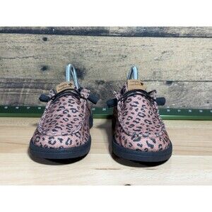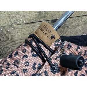 The Simply Southern animal print slip-on shoes in ladies size 8 are stylish and comfortable loafers featuring a unique cheetah and turtle design. Made of cotton with a slip-on closure, these brown and black animal print shoes are perfect for casual wear. The animal-themed design adds a fun and trendy touch to your outfit, making them a great addition to any woman's wardrobe.