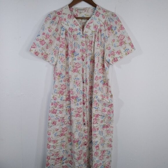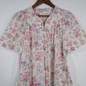 SimplyBasic Vintage 80s Women Floral Quilted V-Neck Nightgown Medium