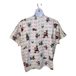 Simply Basic Women's Christmas Scrubs Top XL White Multi