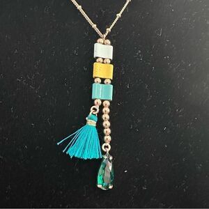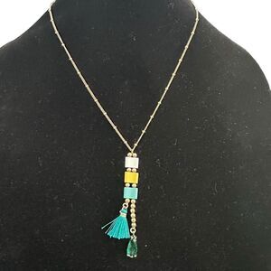 Cute gold in color, adjustable length. Green colored stone. Fashion jewelry. Up to 20”.