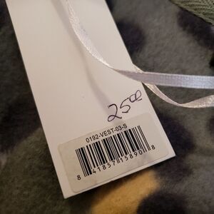 ~ Description: Green, black, tan and white leopard print, soft fleece, faux leather trim, 2 side pockets, shawl collar
